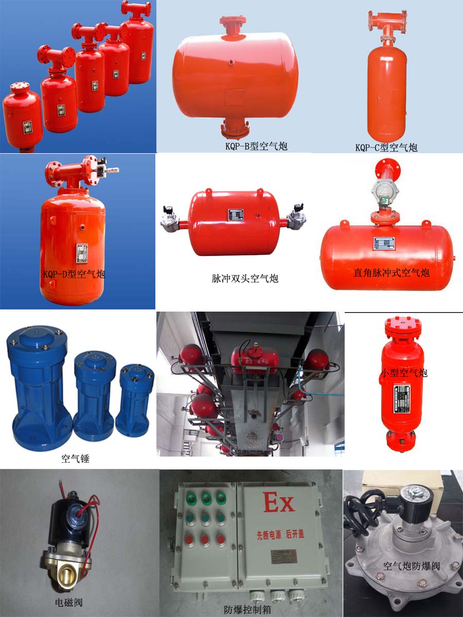 空氣炮廣泛應(yīng)用于火力發(fā)電廠、煤礦及井下煤倉、洗煤廠、水泥廠、混凝土加工廠、鑄造廠、化肥廠、焦化廠、煤氣廠、化工廠、鋁廠、堿廠、鋼鐵廠、礦山、 碼頭、食品、糧食、飼料加工廠、鍋爐、制藥廠等重要貯運散裝物料的場合。